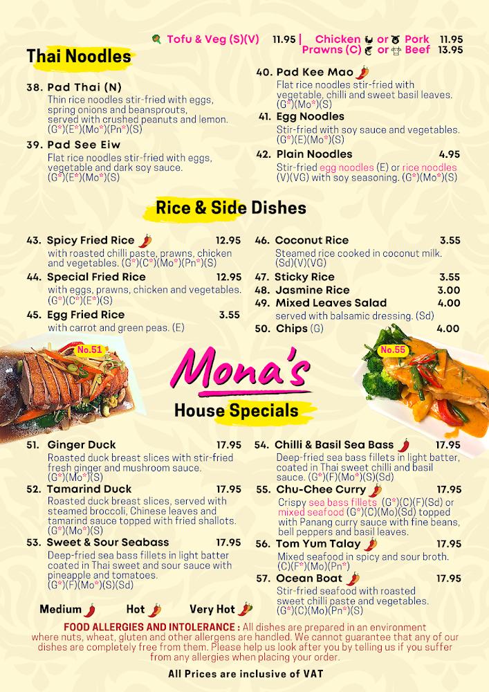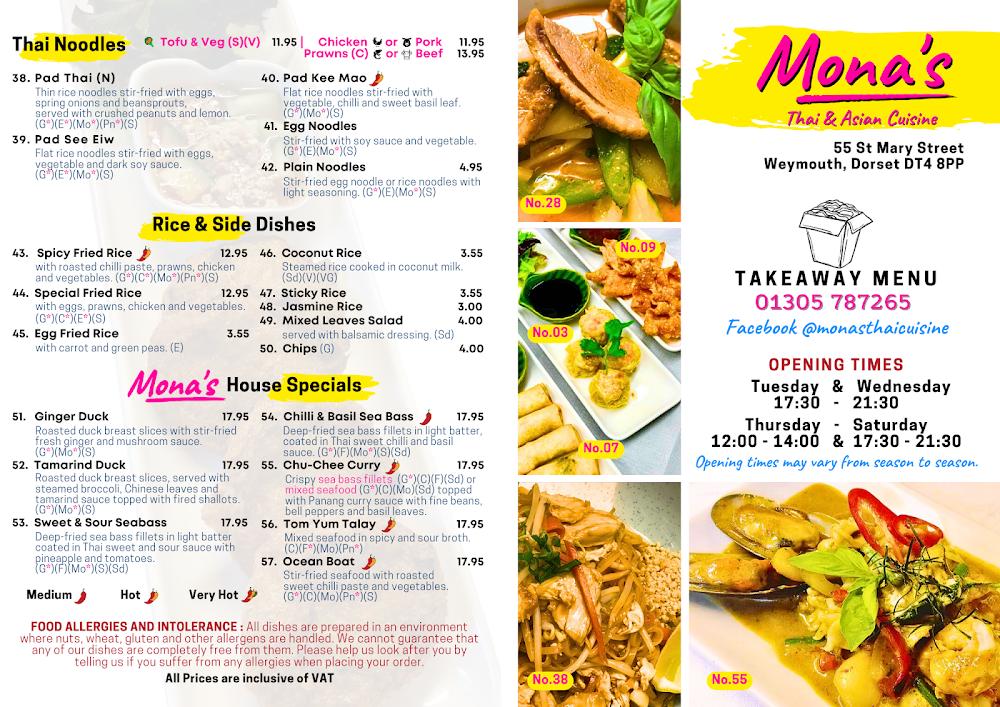 Mona's Thai and Asian Cuisines brings a slice of Thailand to Weymouth, located at 55 St Mary St, just a stone's throw from the old harbour. The restaurant stands out not only for its delicious food but also for its intimate setting, which makes it a perfect destination for family gatherings, casual evenings, or romantic dinners. With a cozy seating arrangement that accommodates only 22-24 guests, the atmosphere is both relaxed and trendy, enhancing the dining experience. The restaurant is wheelchair accessible and also welcomes young families with high chairs available for children. Since its establishment in 2018 by two Thai ladies, Mona's has steadily built a loyal following, thanks in part to its dedicated service and authentic flavors. Reservations are highly recommended due to the limited seating and popularity among locals and tourists alike. Whether you are just passing through or a resident looking for genuine Thai cuisine, this little gem is easily accessible and a number one choice.